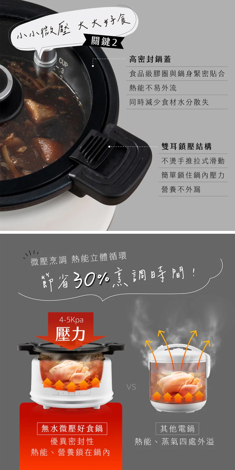 ◆ 立體循環 微壓烹調節省30%烹調時間