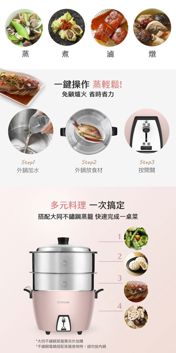 ◆ 煮飯/粥、蒸、滷、燉多用途
