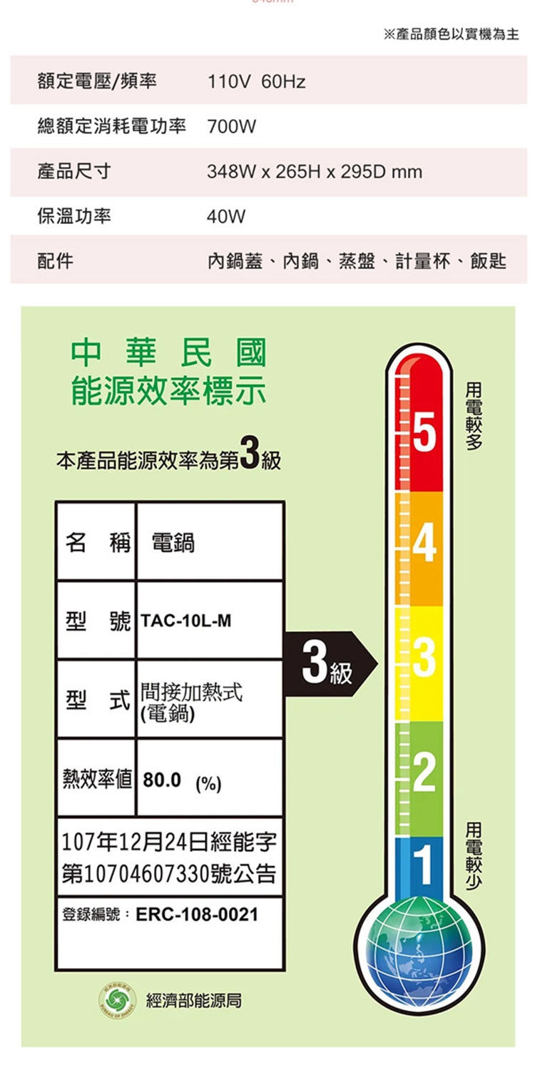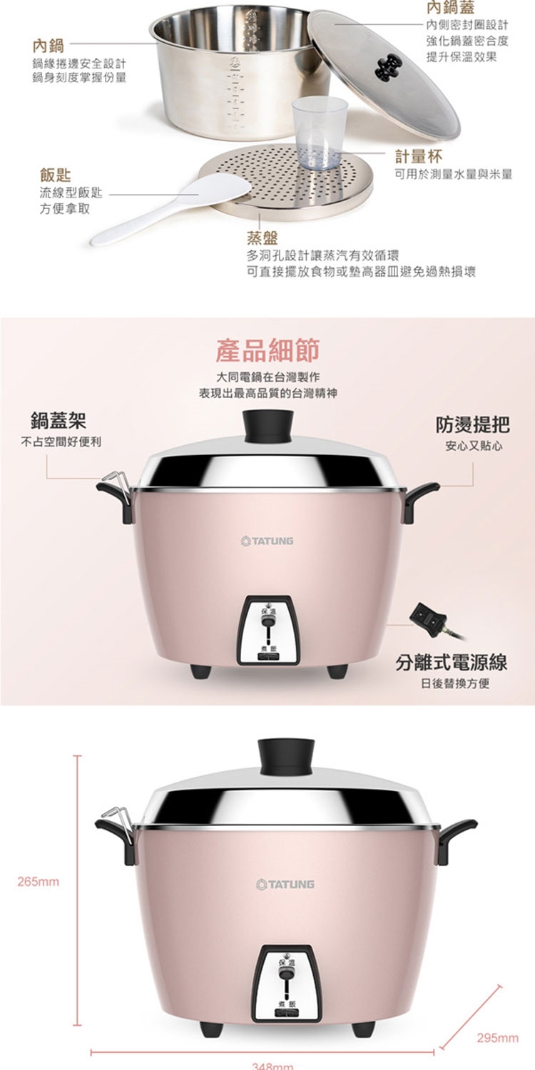 ◎ 配件: 內鍋蓋、內鍋、蒸盤、計量杯、飯匙