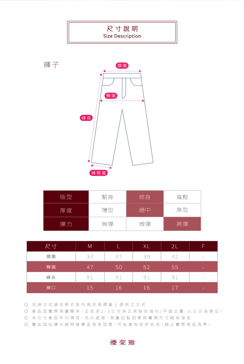 ※ 本尺寸會因布料彈性、洗水處裡、測量起點因素與實際尺寸略有落差