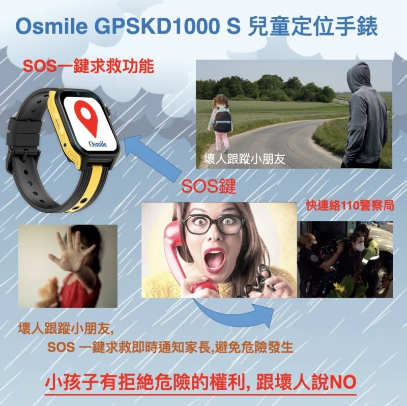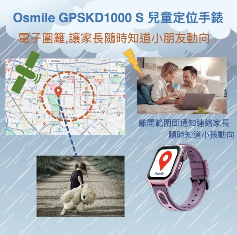 Osmile GPSKD1000-S 個人衛星定位器為協尋輔具,兒童安全最主要還是需要家人負責與關心。另外 Osmile GPSKD1000-S 兒童定位手錶為充電使用裝置及透過4G 訊號通訊,使用者忘記充電或電信公司4G 訊號無法涵蓋的範圍,都有可能造成手錶無法發揮求救通話與定位的功能,以上因素為 Osmile 公司無法掌控的風險與因素。因此Osmile 公司不負責任何穿戴Osmile GPSKD1000-S 兒童走失或安全的相關法律責任。