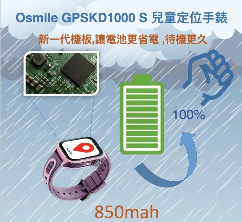 Osmile GPSKD1000-S 手錶不使用時,至少兩天充一次電能延長電池使用壽命
