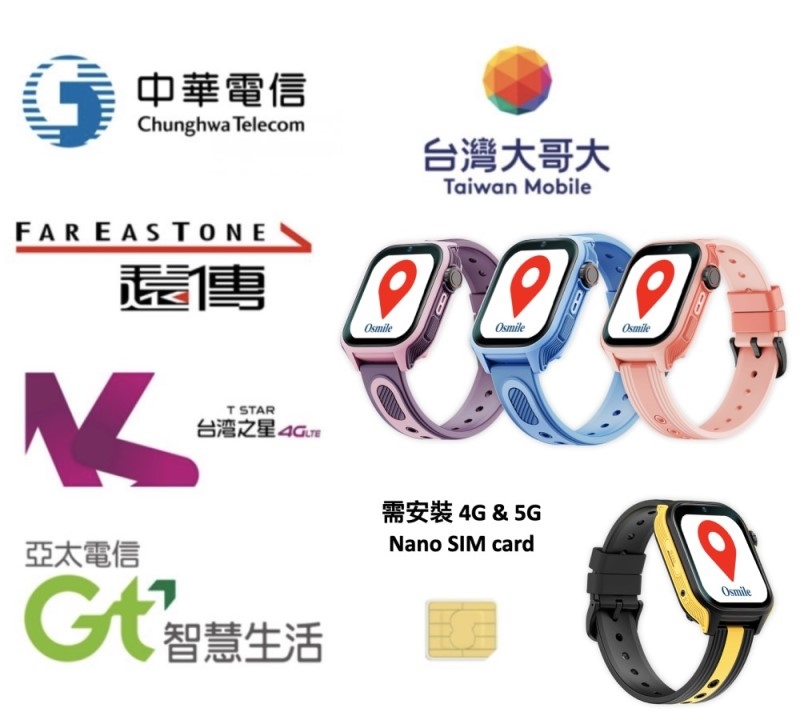 電信公司:兒童智慧手錶支援中華電信、台灣大哥大、遠傳、台灣之星 4G/5G Nano SIM Card