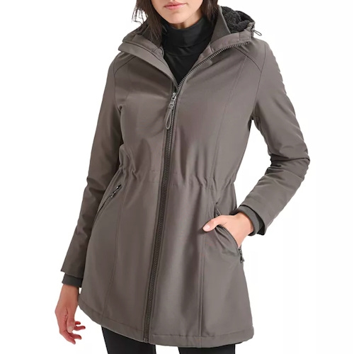 【Calvin Klein】2024女時尚連帽駝色抓絨襯裡外套