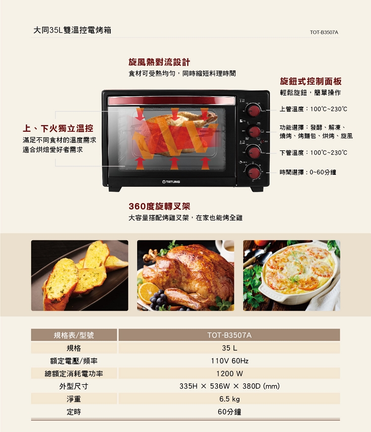 ◆ 功能選擇:發酵/解凍/燒烤/烤麵包/烘烤/旋風