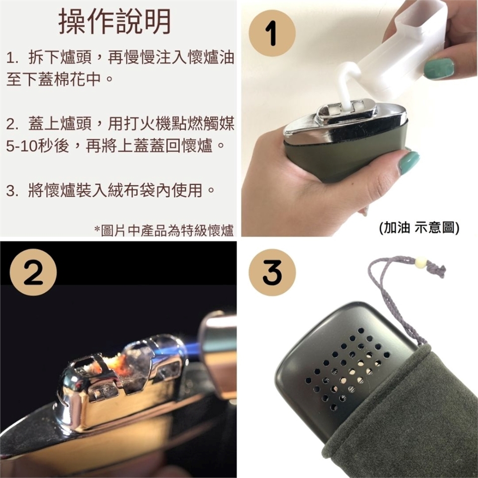 (請務必要將懷爐放入絨布袋內!以防高溫燙傷皮膚)