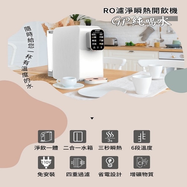 贈 GP-W01R專用RO+PAC+CF濾心組 G-PLUS 4L RO瞬熱開飲機 GP-W01R -