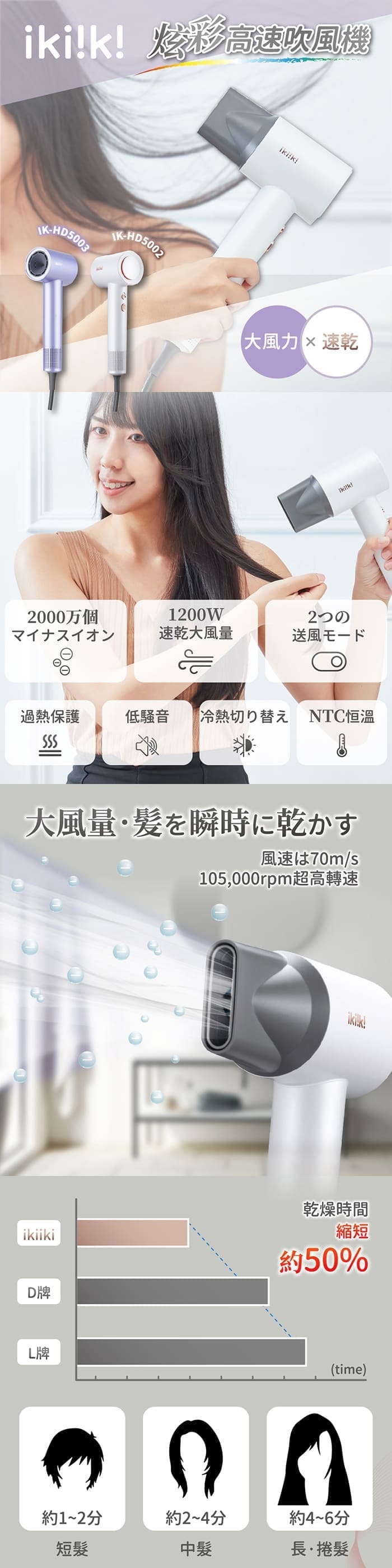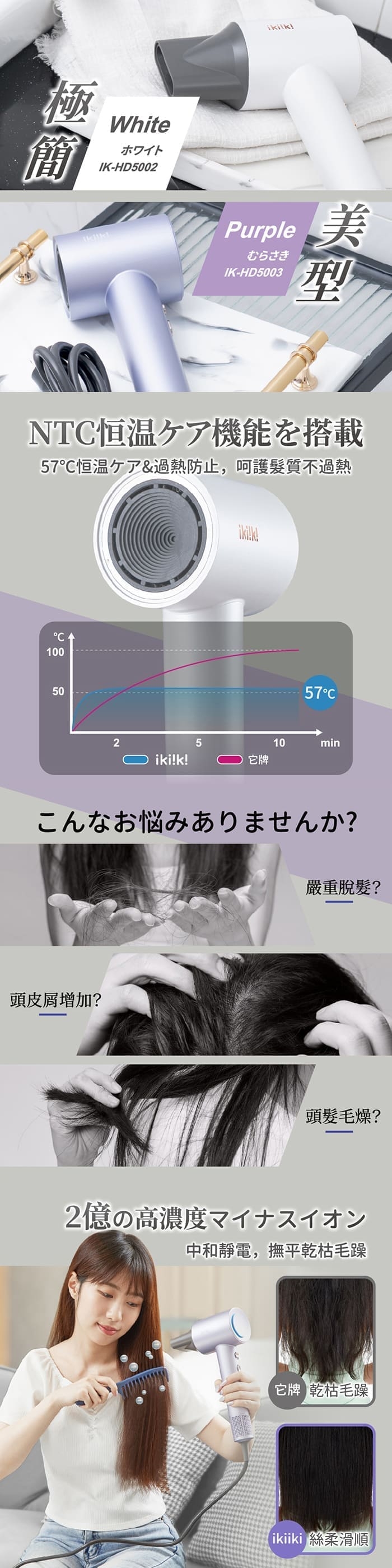 【商品名稱】ikiiki伊崎 炫彩高速吹風機 白色IK-HD5002 / 紫色IK-HD5003