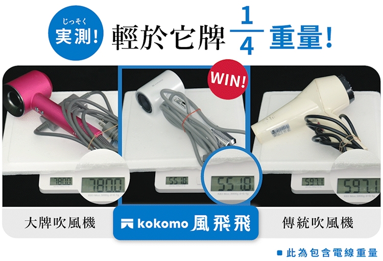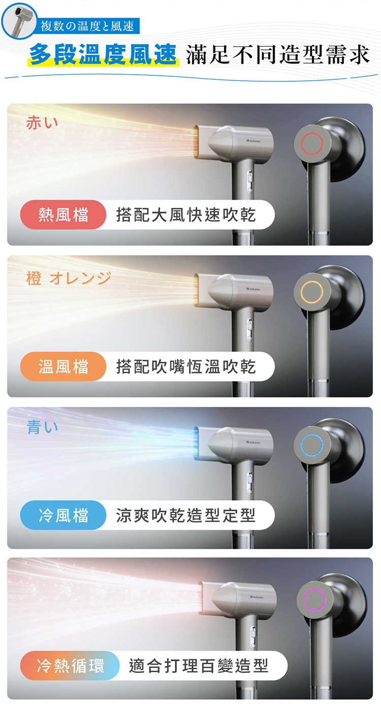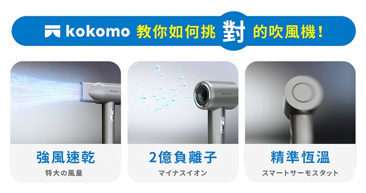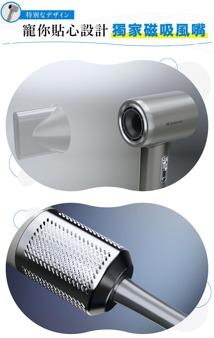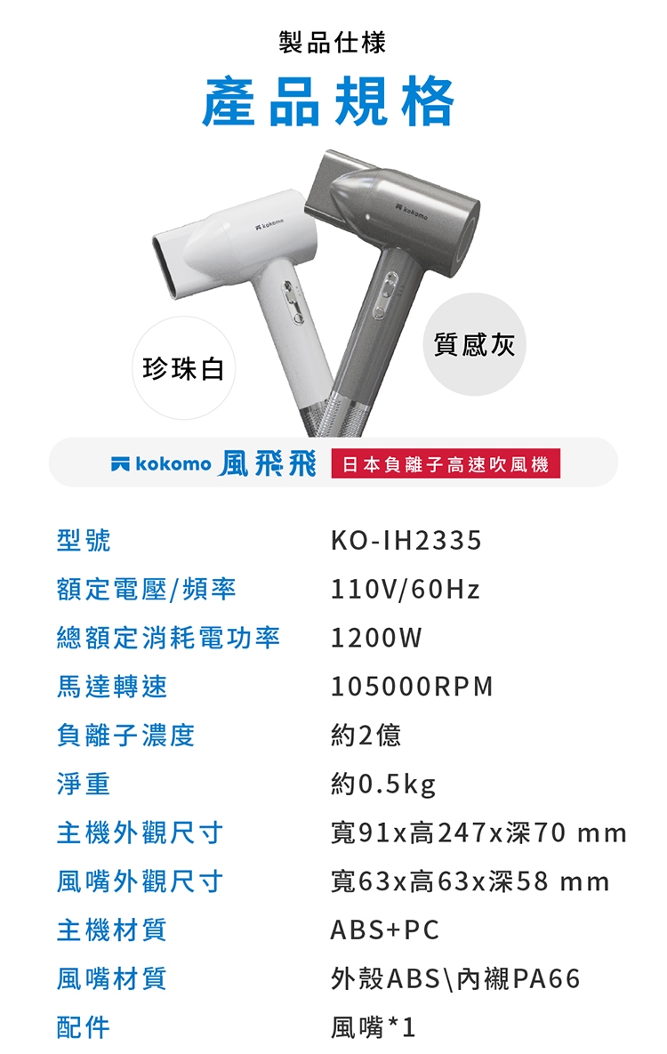 【商品名稱】kokomo風飛飛 日本負離子高速吹風機 KO-IH2335 ( 灰銀色/珍珠白)