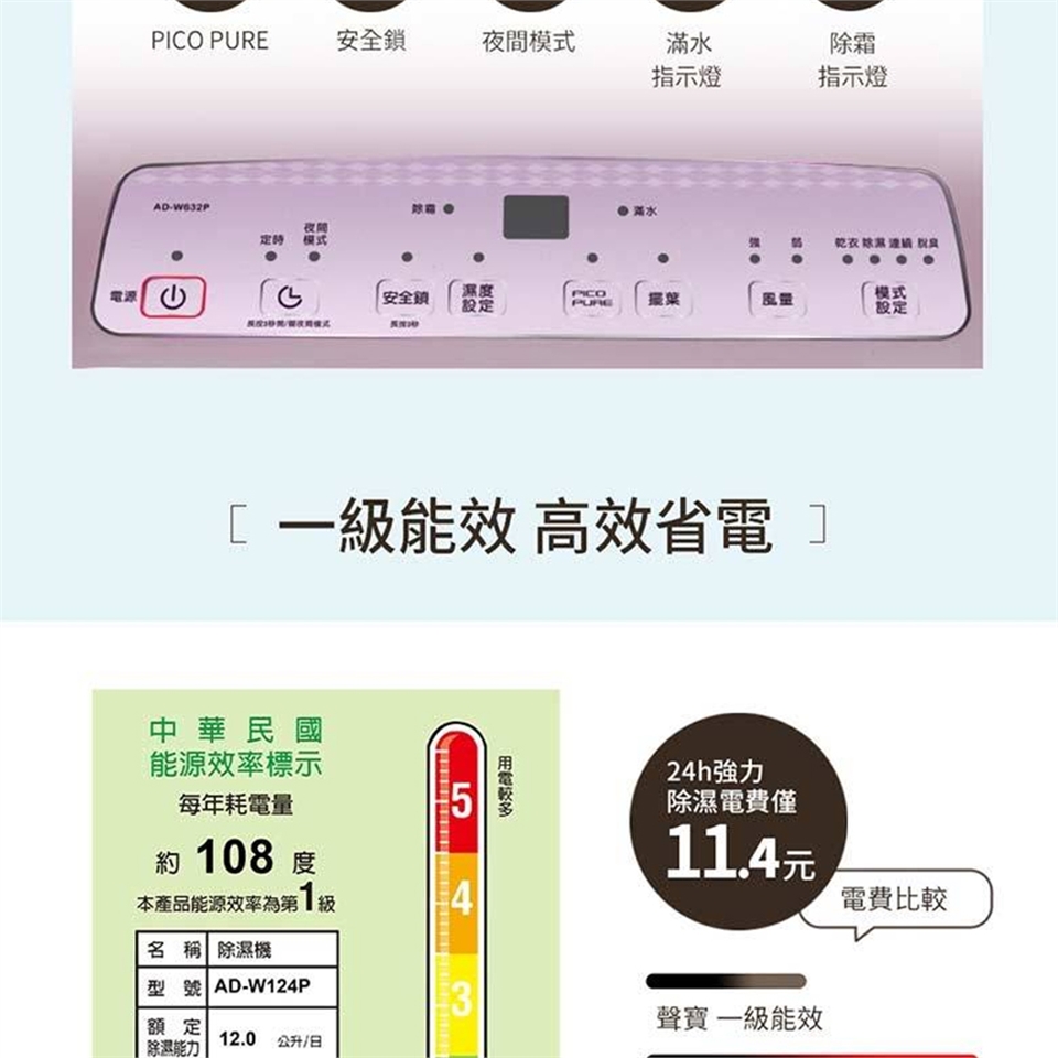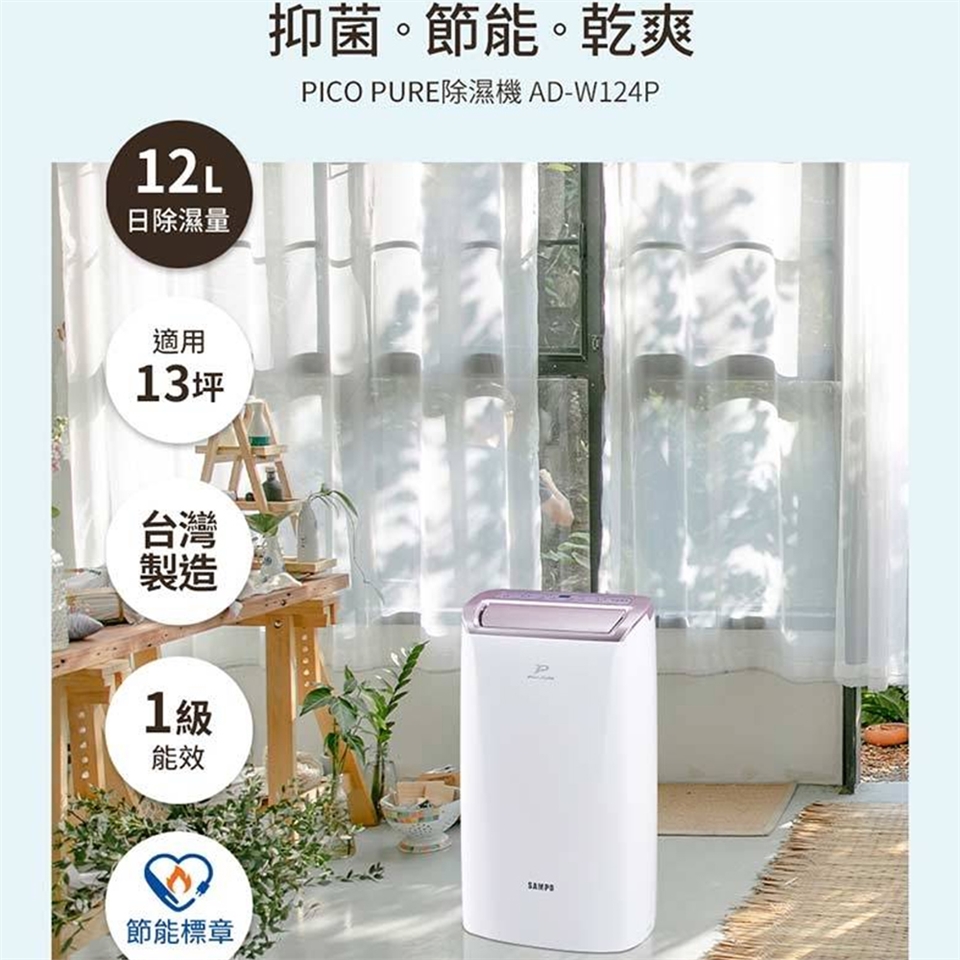 【商品名稱】聲寶12L PICO PURE水離子除濕機 AD-W124P