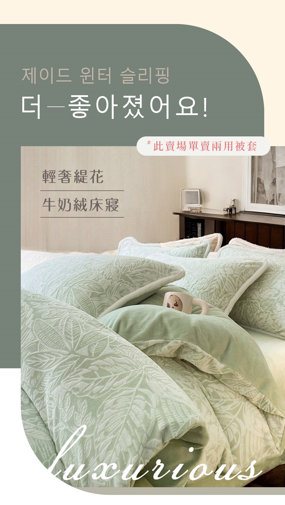 優雅純色寢具 超柔軟親膚觸感,豐厚短絨毛,細膩順滑。入被保暖、熱感蓄溫,有效阻隔冷空氣,溫暖冷冷的冬天。