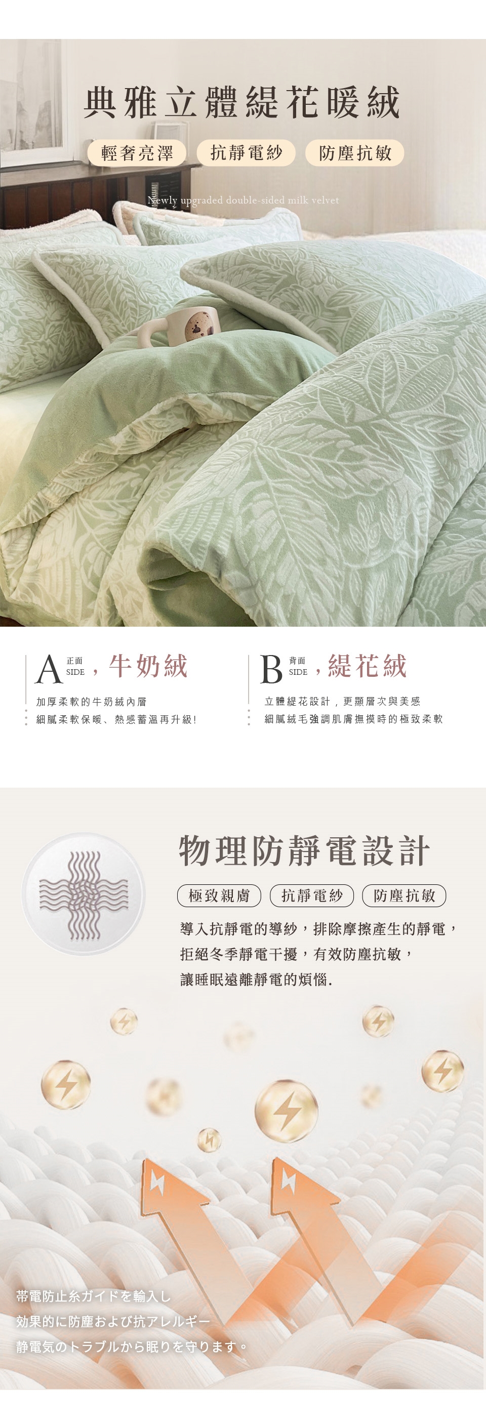 立體緹花設計,更顯層次與美感,細膩絨毛強調肌膚撫摸時的極致柔軟
