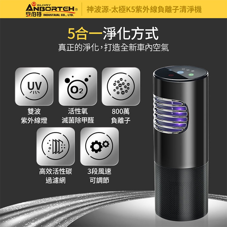 品名:【安伯特】神波源 太極K5紫外線負離子 車用空氣清淨機