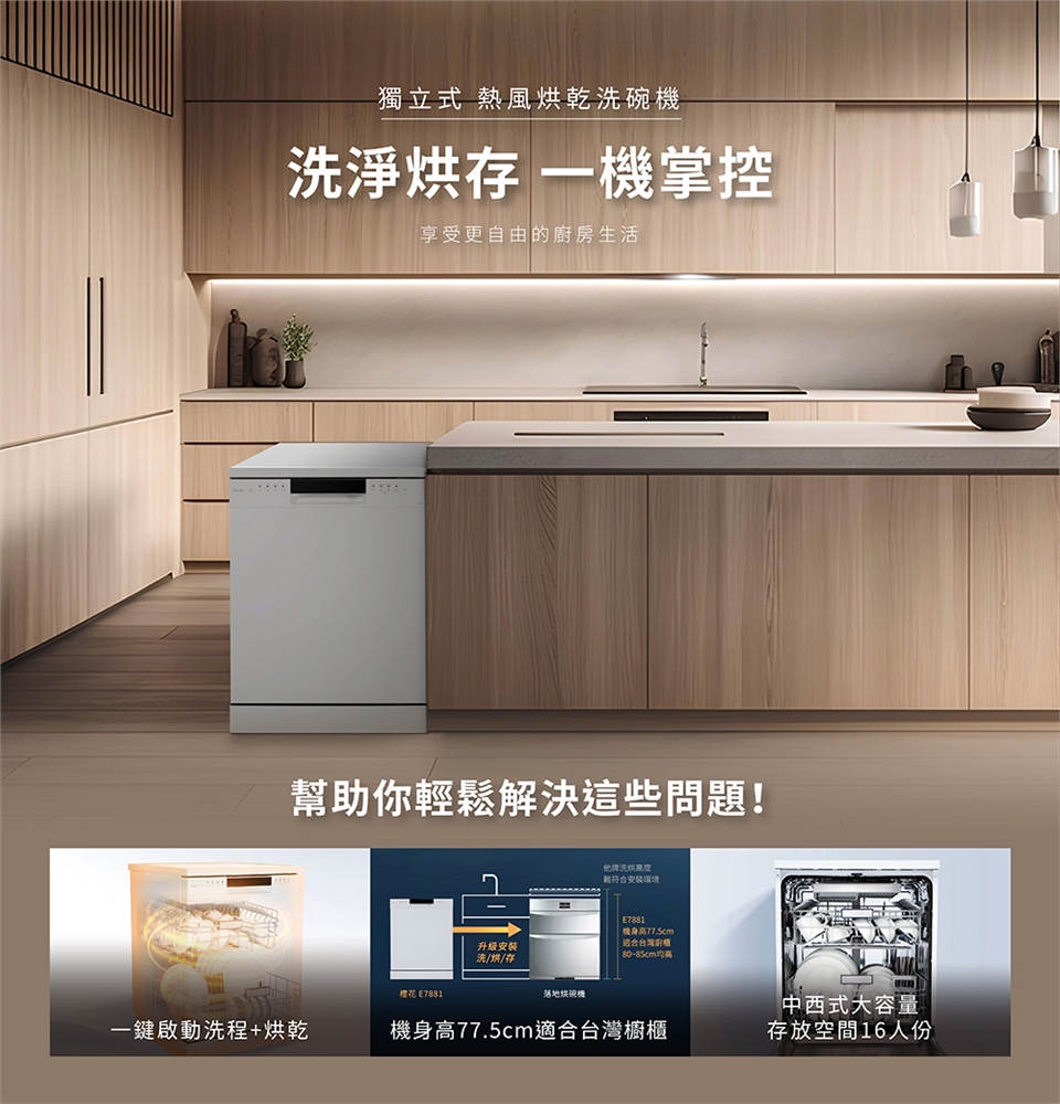 洗程結束自動熱風烘乾,加強碗盤乾燥效果