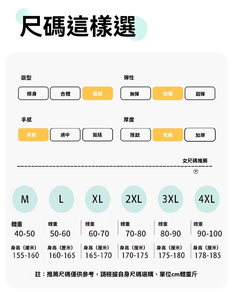 尺寸:M/L/XL/2XL/3XL/4XL