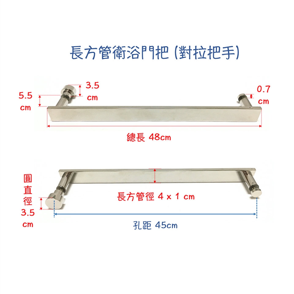 長方管衛浴門把 (對拉把手)