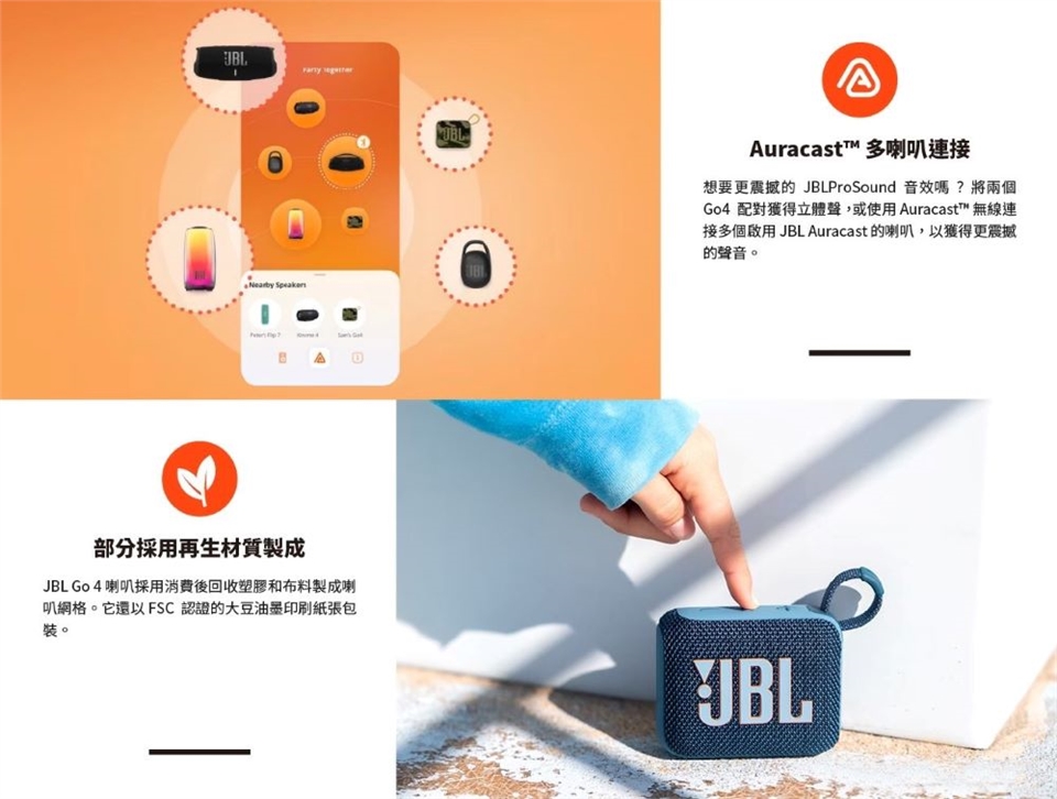 ●透過Auracast可多喇叭串連(兩台連接可獲得立體聲)