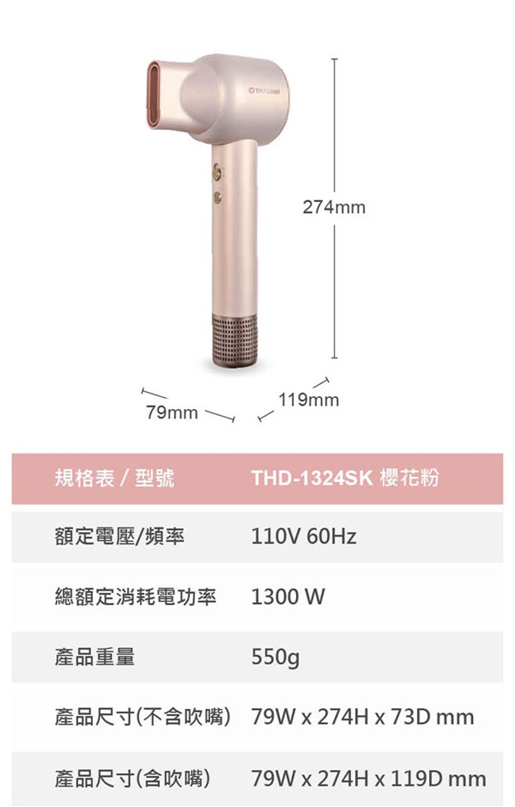 ◎ 產品尺寸(含吹嘴):79W x 274H x 119D mm