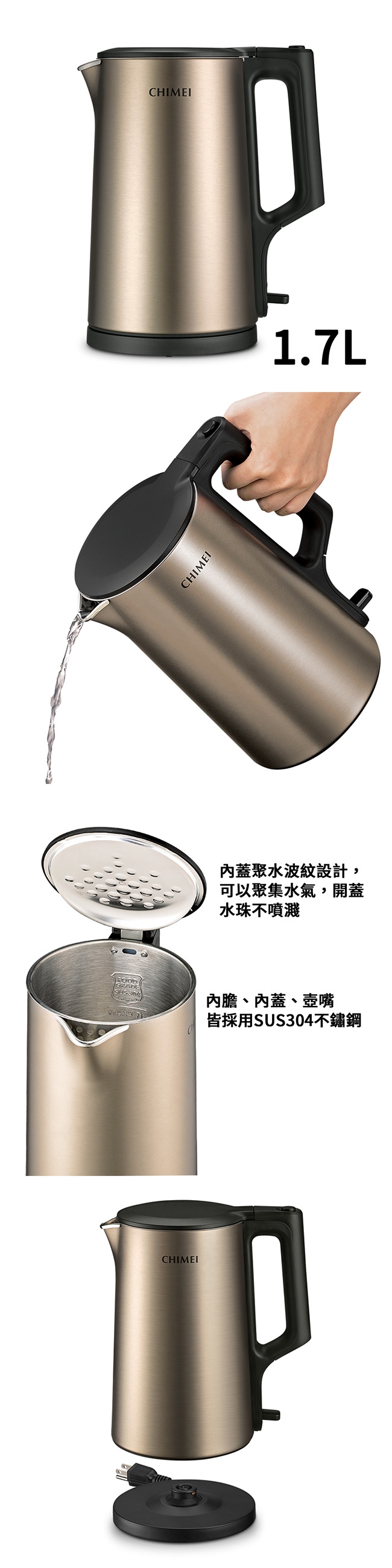CHIMEI奇美 304不鏽鋼防燙快煮壺1.7L KT-17MS05