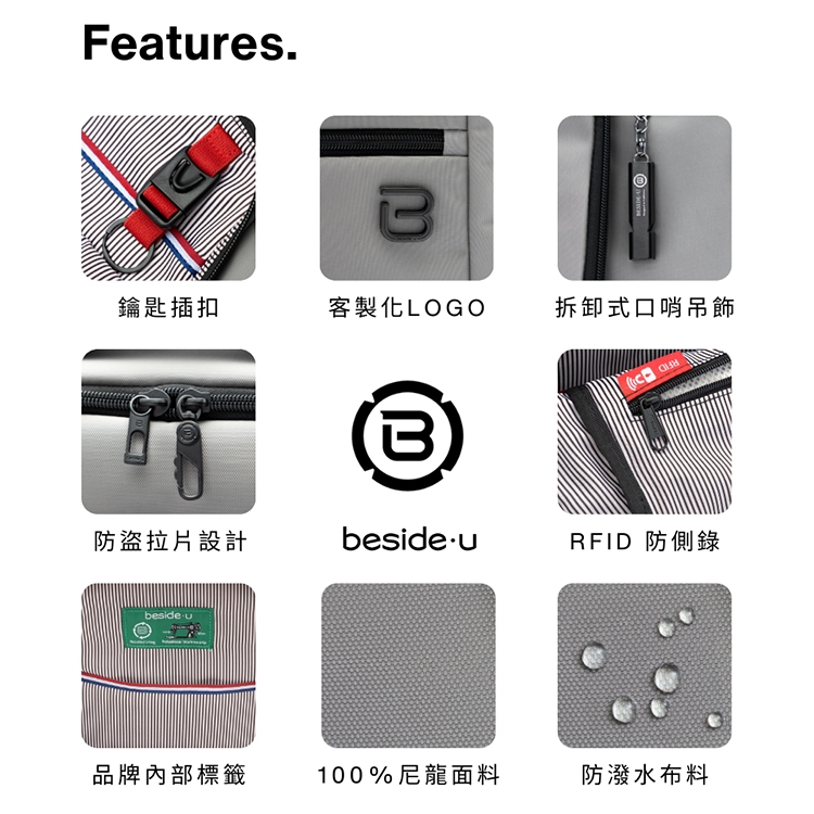 * 100%防潑水尼龍布料。