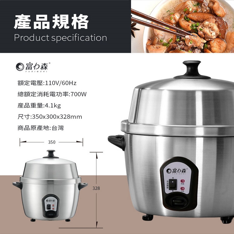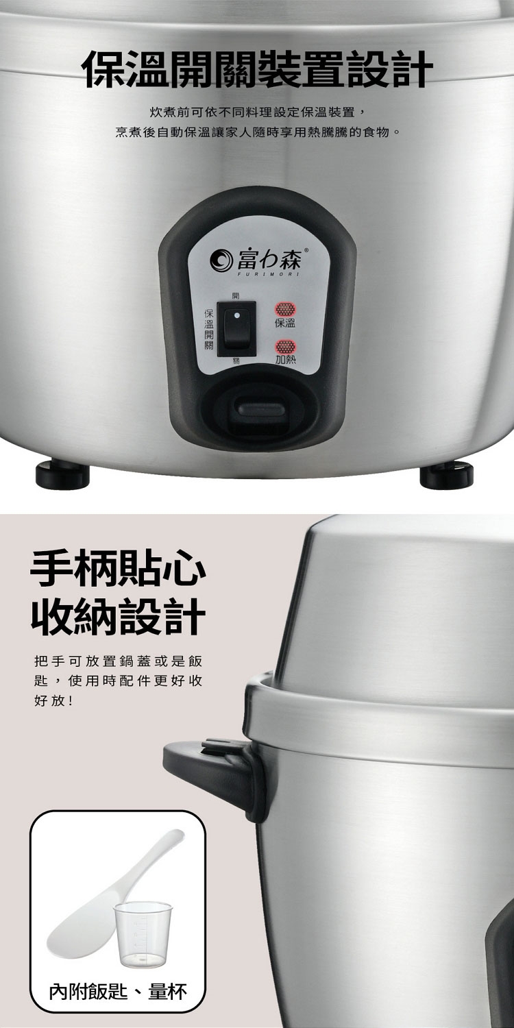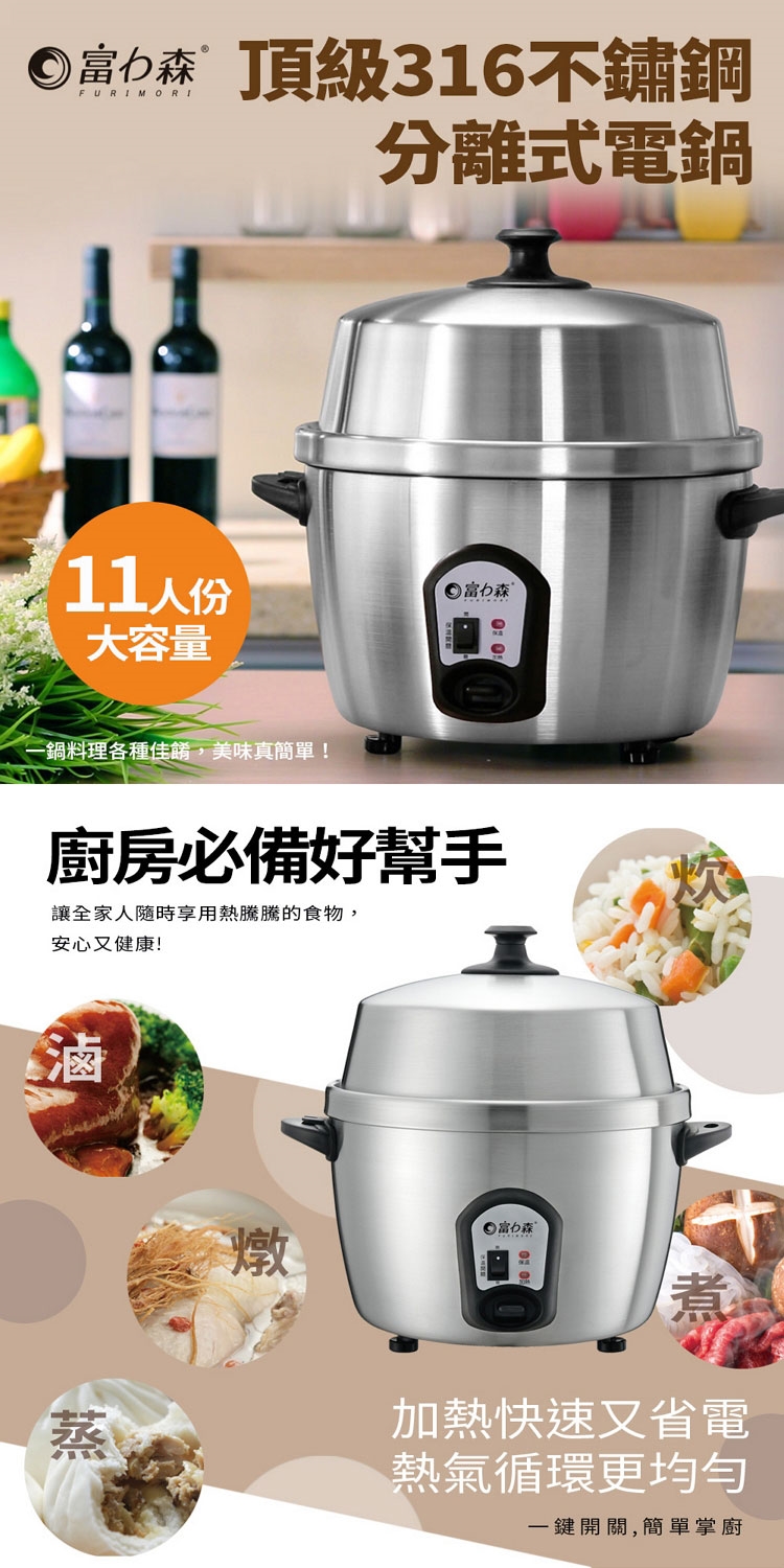 ◎ 配件:飯匙、量杯、蒸架、11人份內鍋、高蓋