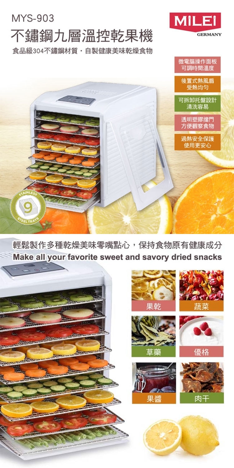 ◆ 大容量9層可拆卸托盤,耐用、容易清洗