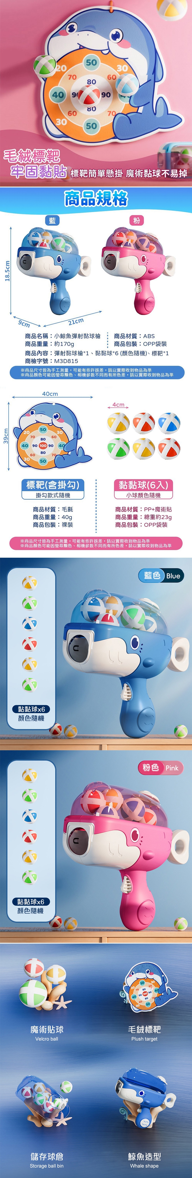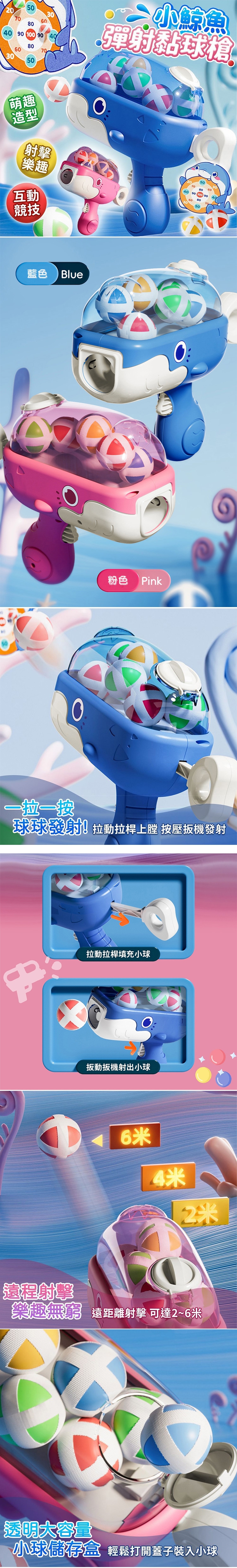 商品名稱:小鯨魚彈射黏球槍超值組合(彈射槍+球+標靶+無痕掛勾) 兒童玩具 聖誕禮物 交換禮物 兒童禮物 送禮