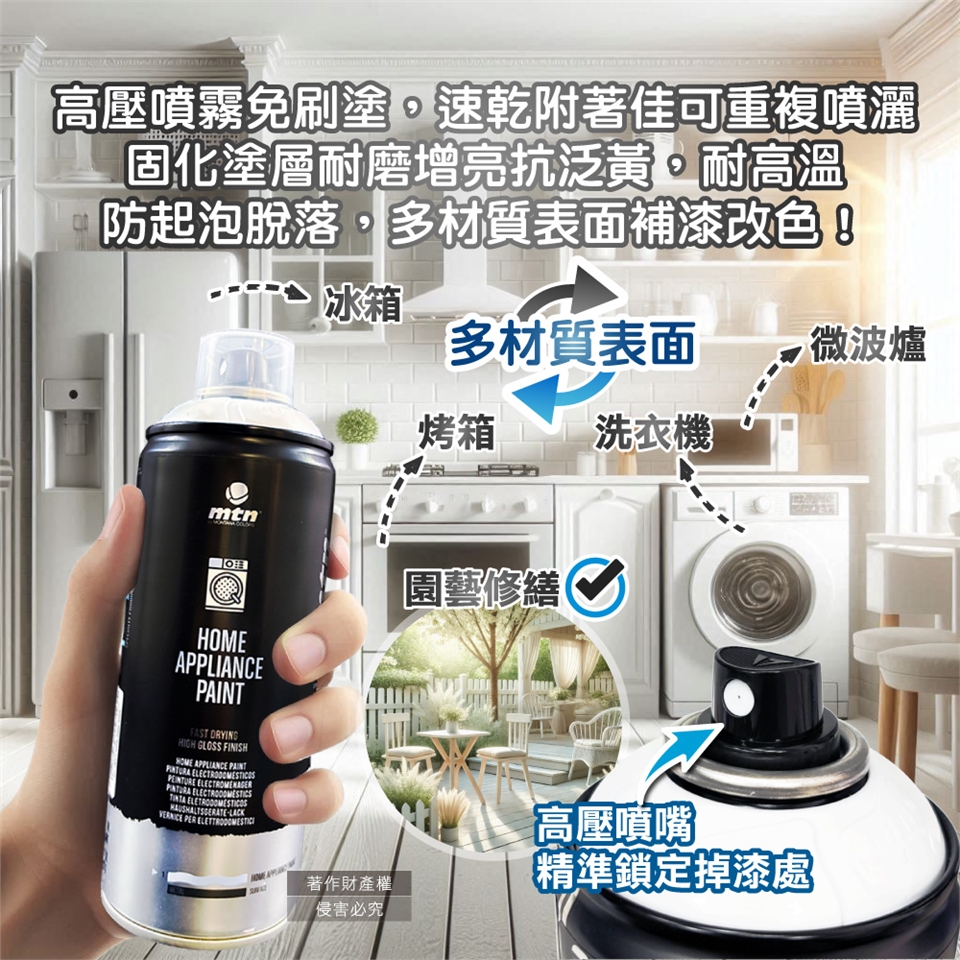 (15)請用於乾淨且乾燥的表面,金屬家電噴灑前請先除鏽,以免影響效果。