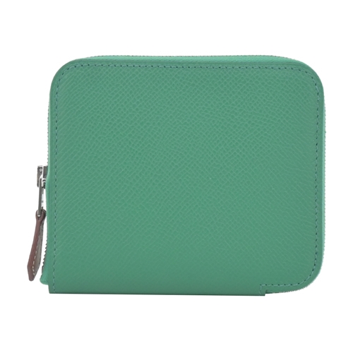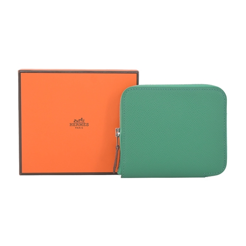 Hermes 愛馬仕 Silk In Compact Epsom 牛皮拉鍊絲巾短夾(AA綠)