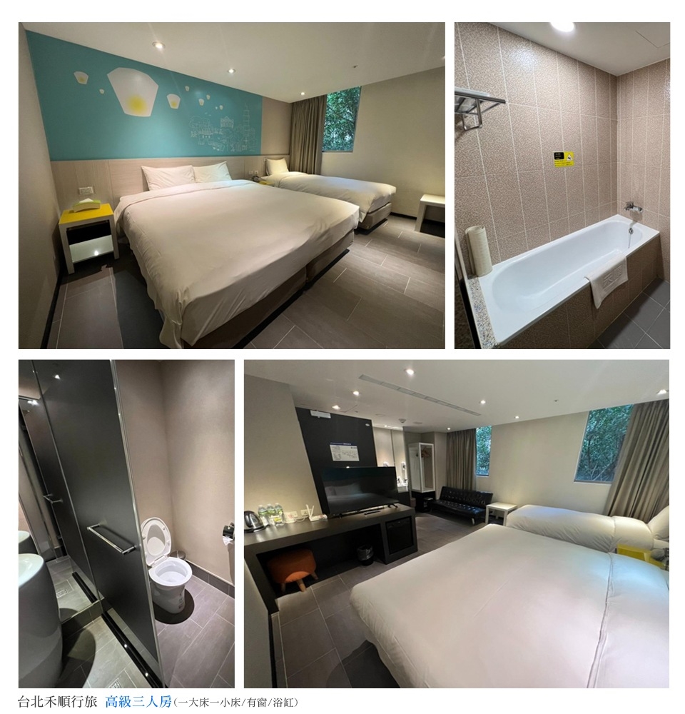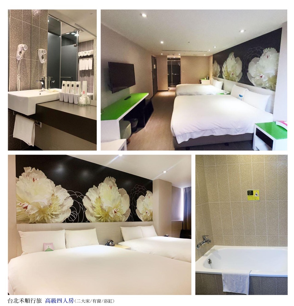 5.加人費用:(1)假日入住:加1人+1000元,入住-高級三人房(有窗/一大床一小床/浴缸)、加2人+1600元,入住-高級四人房(有窗/二大床/浴缸),加人皆含商品內容;(2)假日欲入住-豪華雙人房+500元(有窗/一大床/浴缸),商品內容維持二人份。第(1)~(2)項訂妥後匯款給旅行社;(3)加購早餐:大人(滿12歲)+350元/人/次、兒童(滿6歲~未滿12歲)+200元/人/次。第(3)項於飯店現場加購付款,房客免收10%服務費。