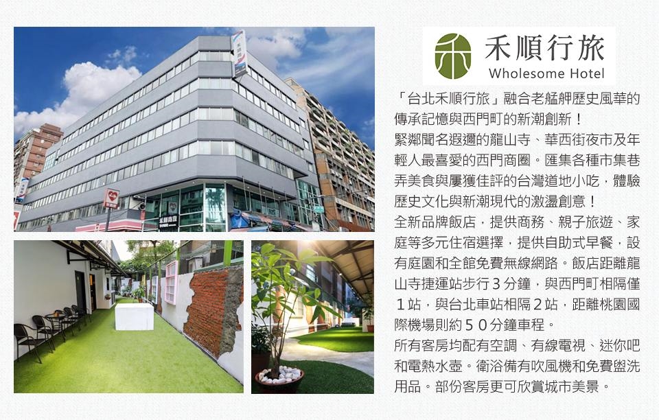 ‧台北車站(高鐵/台鐵/客運):轉乘捷運-搭乘板南線(往頂埔)→龍山寺站下車-往出口1→直行西園路一段→左轉廣州街(經過仁濟醫院)往廣州街夜市→禾順行旅(出站後步行約5分鐘)。