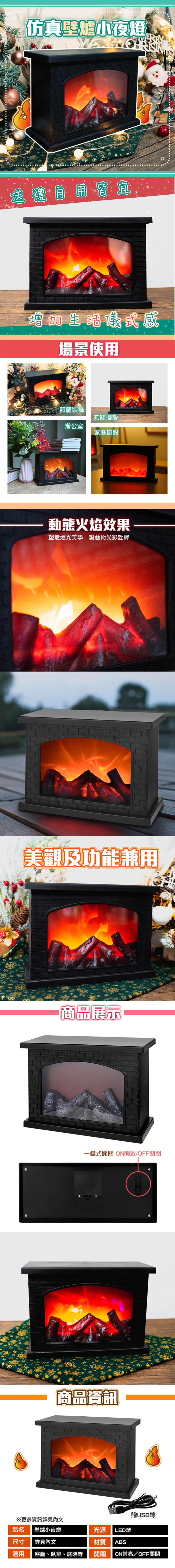 商品名稱:超仿真動態火焰壁爐小夜燈(F款)