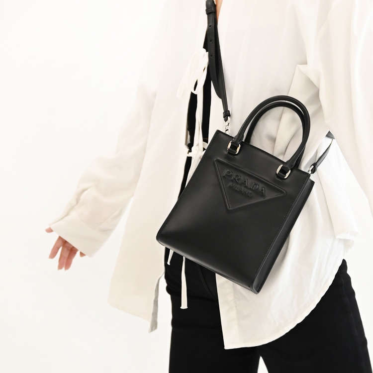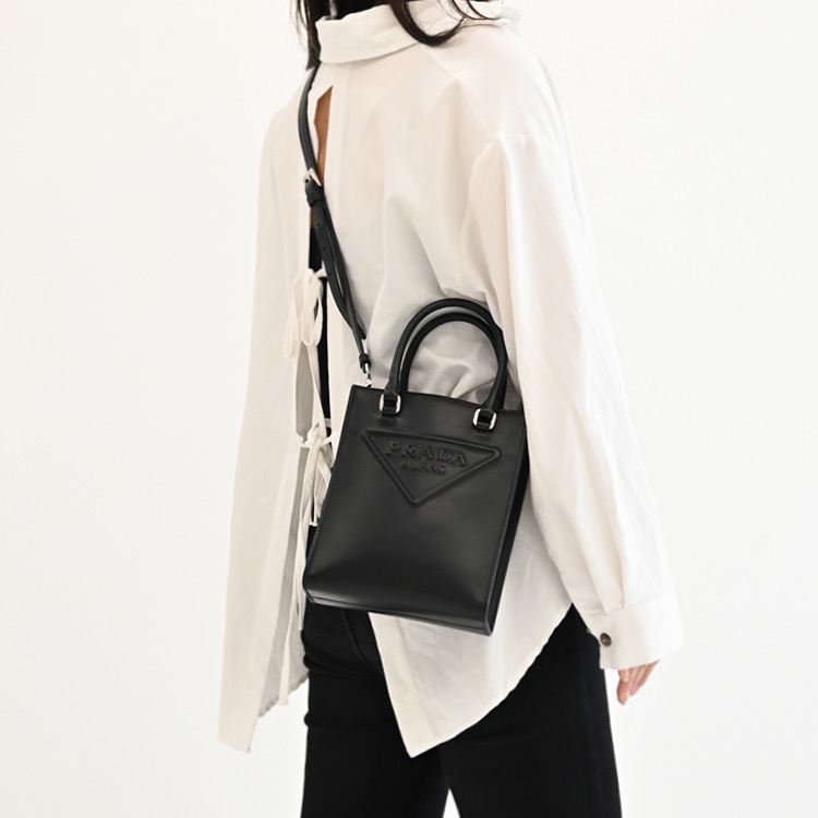 PRADA 專櫃熱銷兩用包,精緻浮雕三角LOGO設計,搭配質感小牛皮材質/內襯皮革+織布,內1貼袋可收納,可放中夾及手機等隨身用品,出遊無負擔包款,釋放出都會優雅的時尚風格,簡潔俐落的包包款。