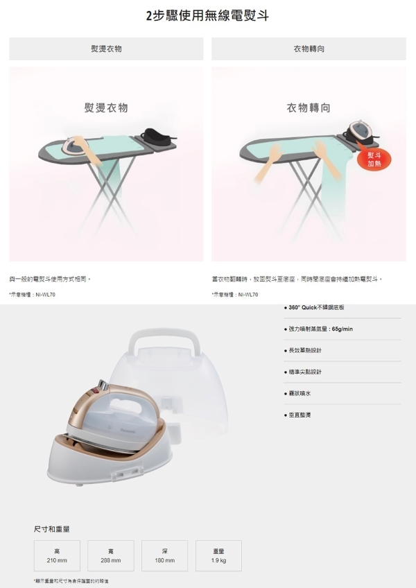 Panasonic 國際牌 無線蒸氣電熨斗 NI-WL75