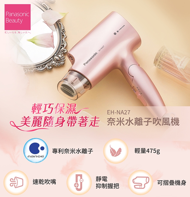 Panasonic 國際牌 奈米水離子三段溫控折疊式吹風機 EH-NA27
