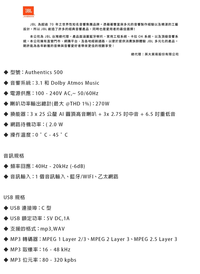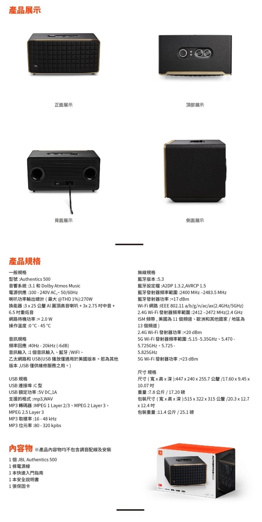 JBL Authentics 500 復古旗艦級家用語音串流藍牙喇叭 公司貨