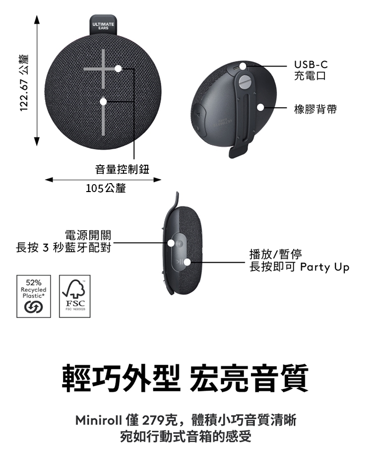●採用環保回收塑膠再製,塑膠零件至少含有40%回收塑膠