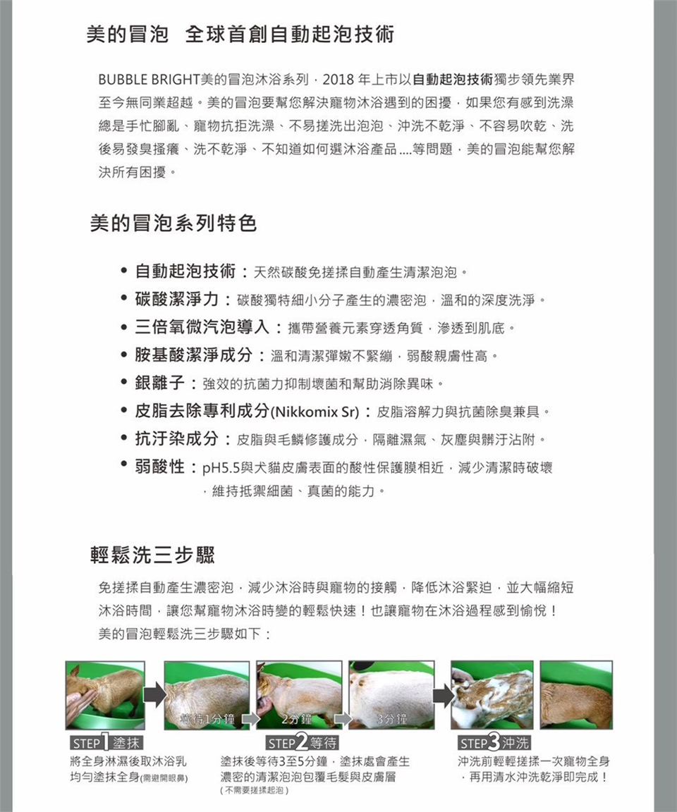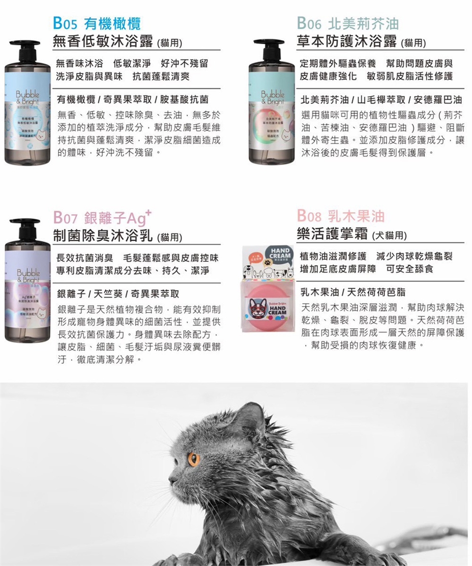 產品介紹:銀離子是天然植物複合物,能有效抑制形成寵物身體異味的細菌活性,並提供長效抗菌保護力。身體異味去除配方,讓皮脂、細菌、毛髮汙垢與尿液糞便髒汙,徹底清潔分解。