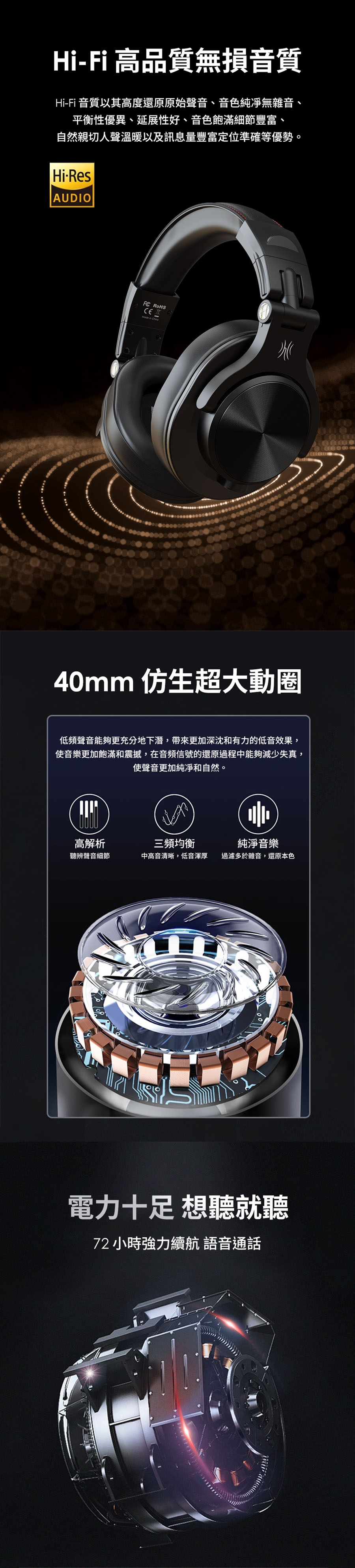 - 卓越音效|40mm驅動單體,細節不失真