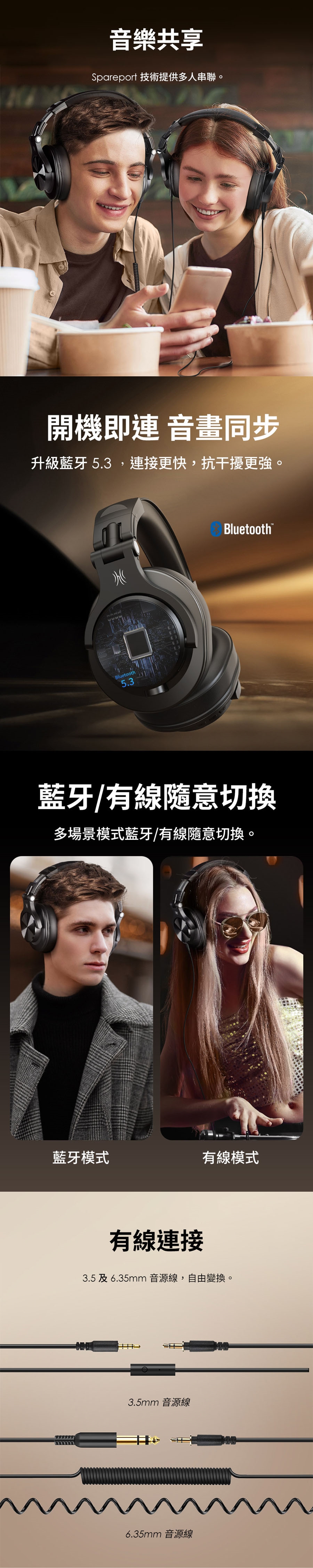 - 有線連接|3.5及6.35mm音源線,自由變換