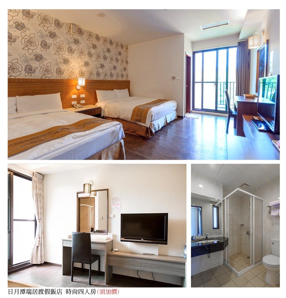 6.加人費用(每房每晚):加1人+600元,升等-時尚三人房、加2人+1100元,升等-時尚四人房,加人含商品內容,但不含日月潭遊湖船票(飯店現場加購全票+300元/張)、維格折價券。訂妥後匯款給旅行社。
