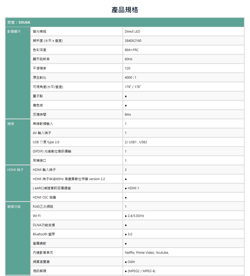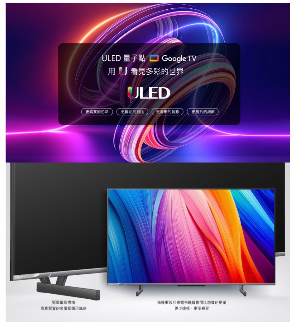 Hisense海信 50吋4K HDR QLED量子點連網液晶顯示器(50U6K)