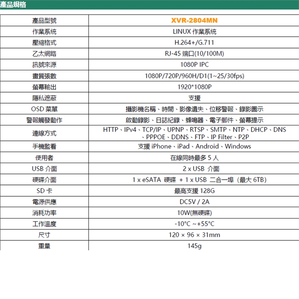 不足、硬碟故障、IP衝突、網路異常等訊息回傳