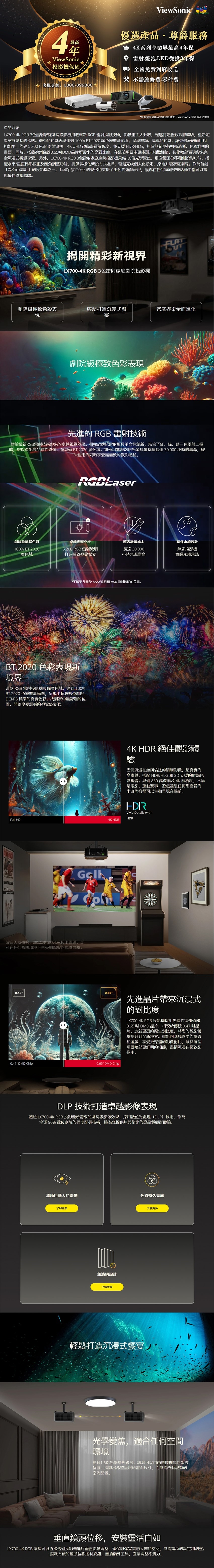 ViewSonic 優派 LX700-4K RGB 3色雷射家庭劇院投影機(5200 流明)