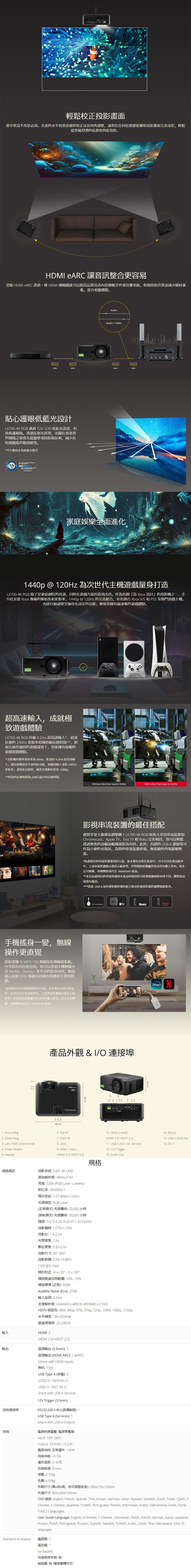 • 5,200 RGB 雷射流明,在任何光源環境下盡享大銀幕絕佳體驗