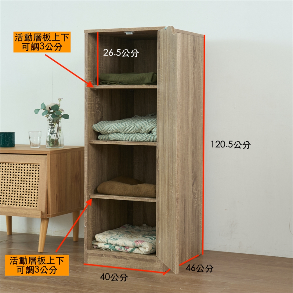 單門衣櫃可以增加細縫空間的收納功能