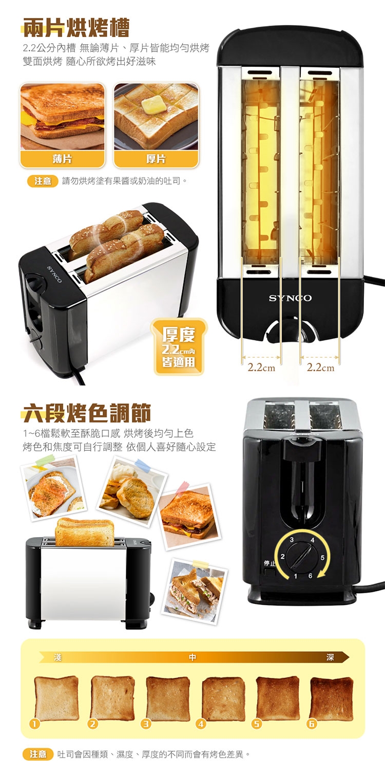 ★ 2.2公分烘烤槽,薄片、厚片吐司皆能均勻烘烤