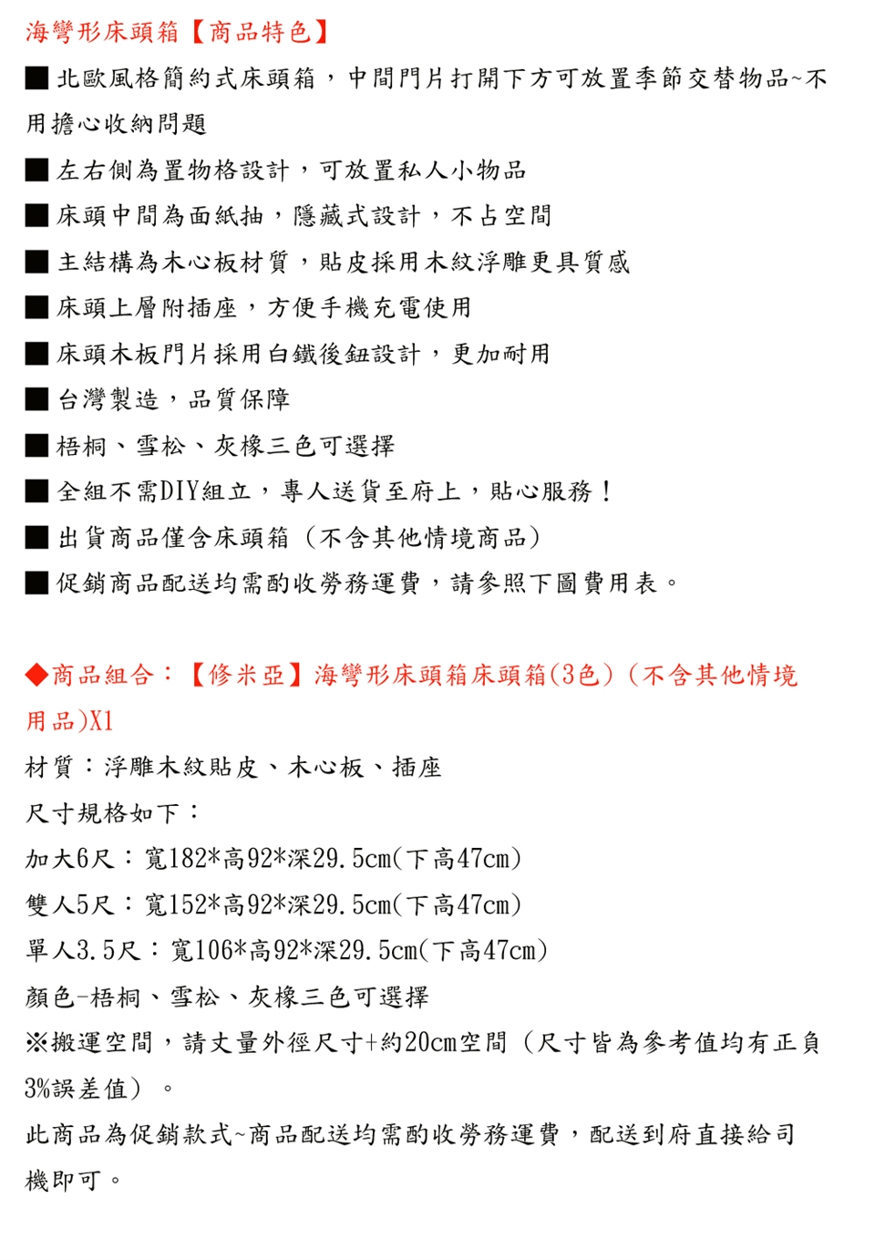 ◆商品收下後 因尺寸不符辦理退貨或貨運送達拒收時 需加收運費1500/件