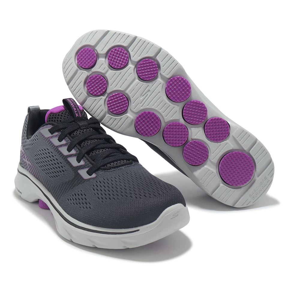 * 4.HYPER PILLAR 超臨界發泡支柱群,相較於前一代 GO WALK 6,全新 GO WALK 7的 HYPER BURST™用量增加了一倍,支柱群延伸自腳尖延伸至腳跟,覆蓋更多表面積,提供額外的穩定性,以及更全面的避震緩衝性能。