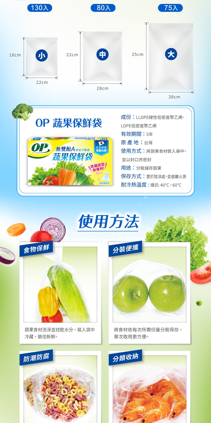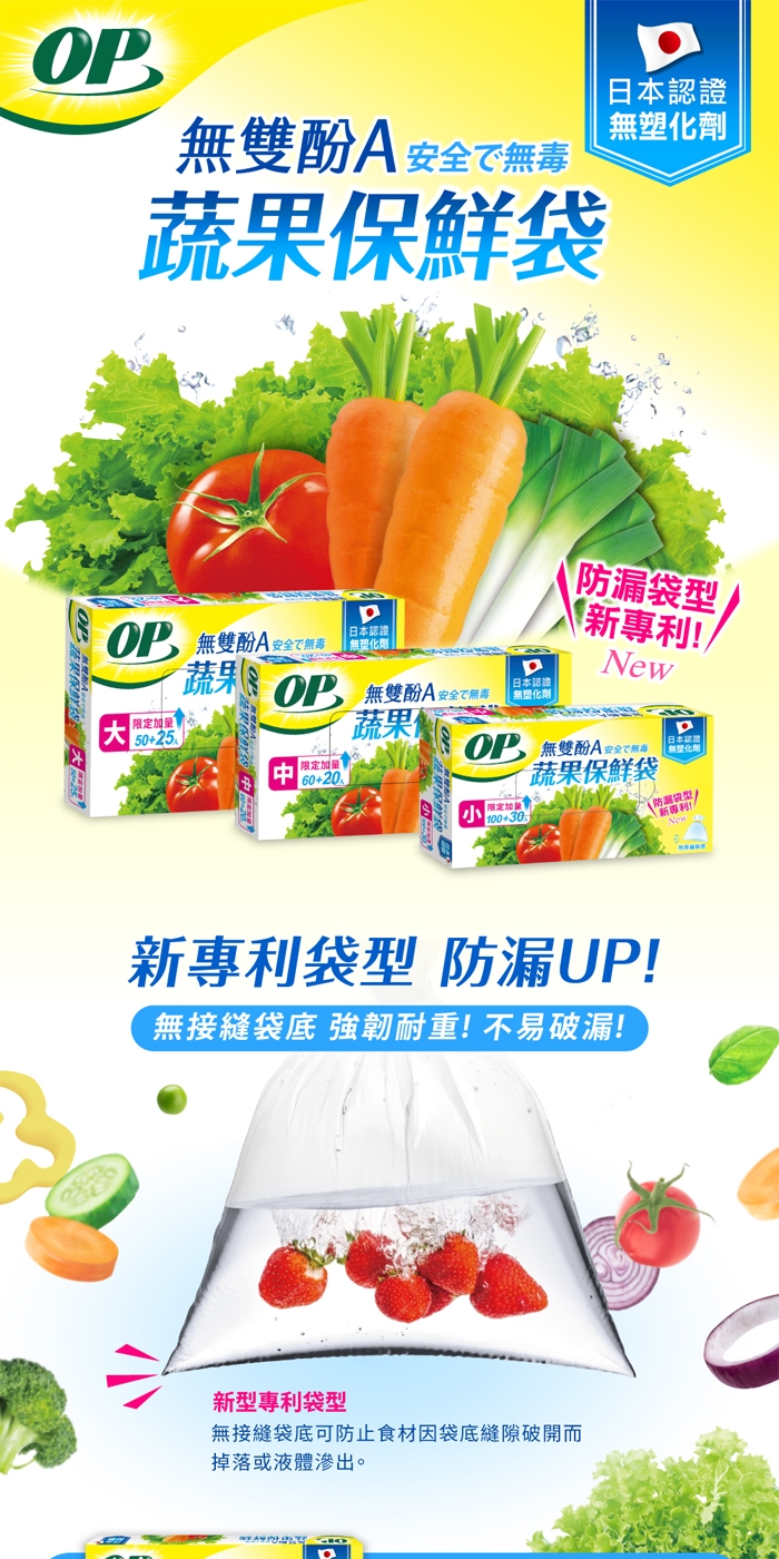 ◆ 防漏袋型新專利: 無接縫袋底,一體成型不易破漏,使用更安心!